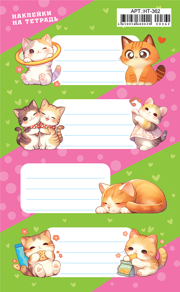 Тематика Кошки Размер Наклейки НА ТЕТРАДЬ 160х97мм ?Вес в граммахВес в граммах2,9 Категория цены A