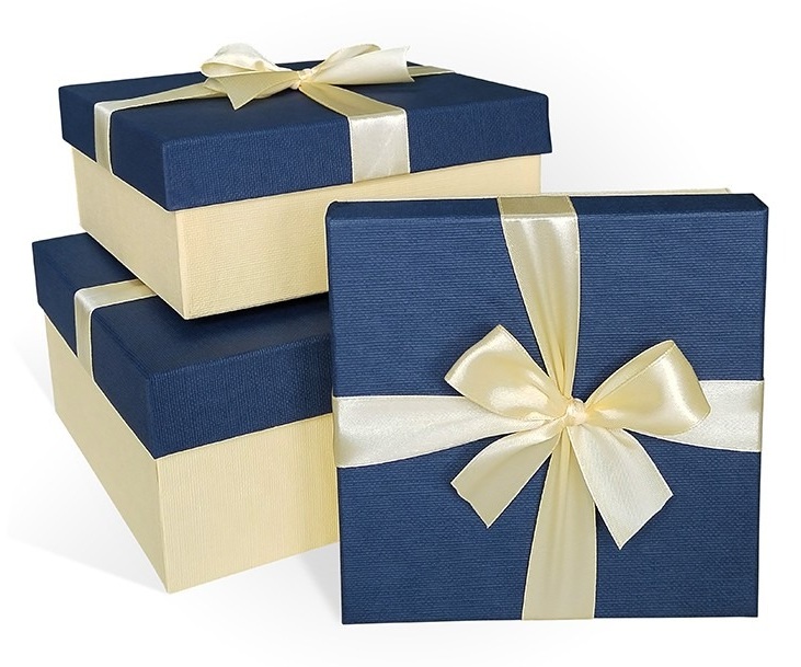 Набор подарочных коробок КВАДРАТ 3в1 "С бантом. Рогожка. Синий" Д10103К.206