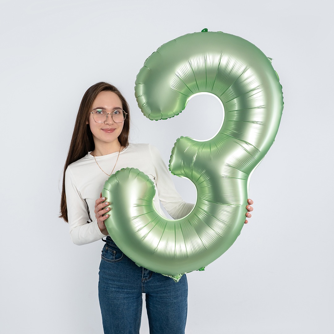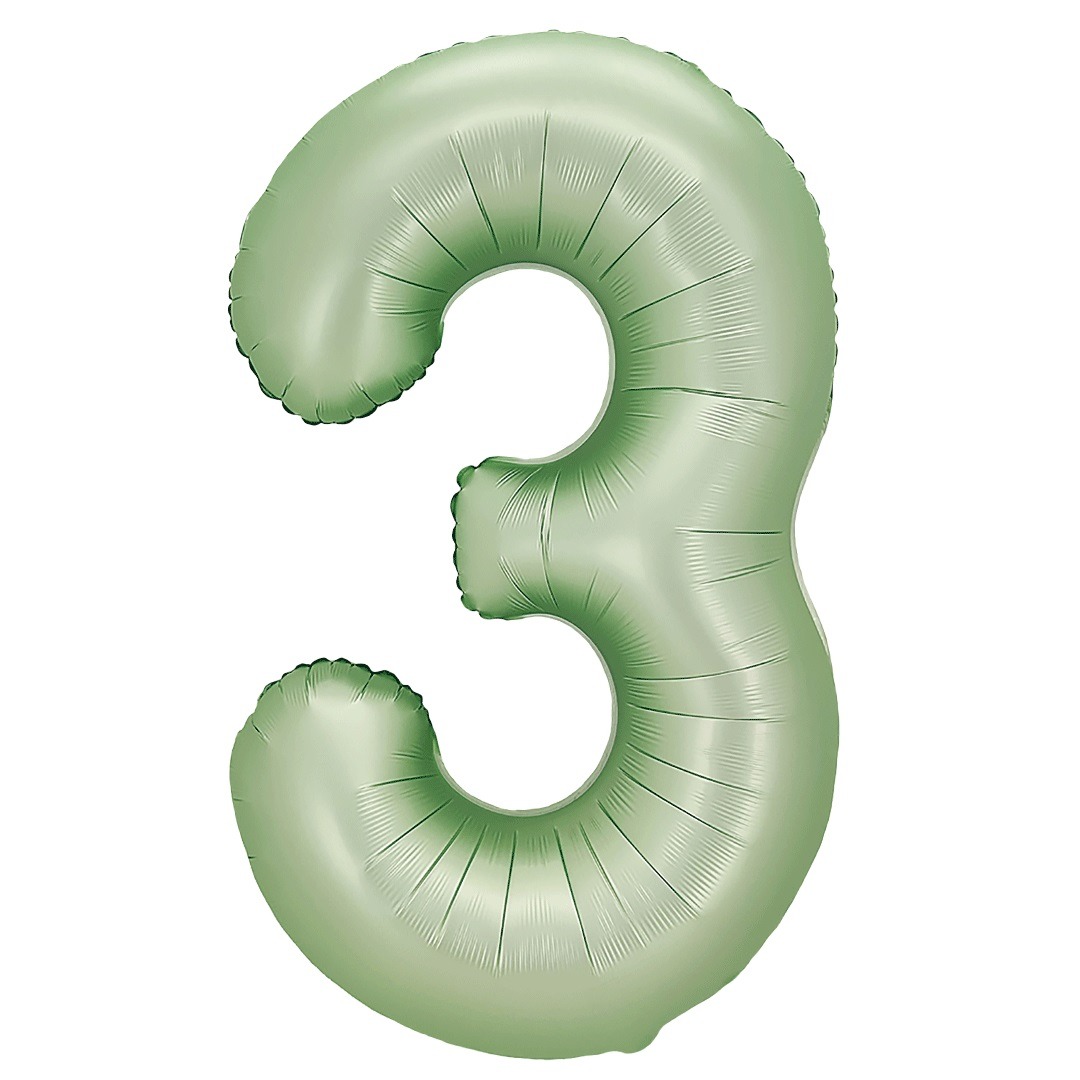 Фольгированный шар "3" цвет авокадо сатин 24313