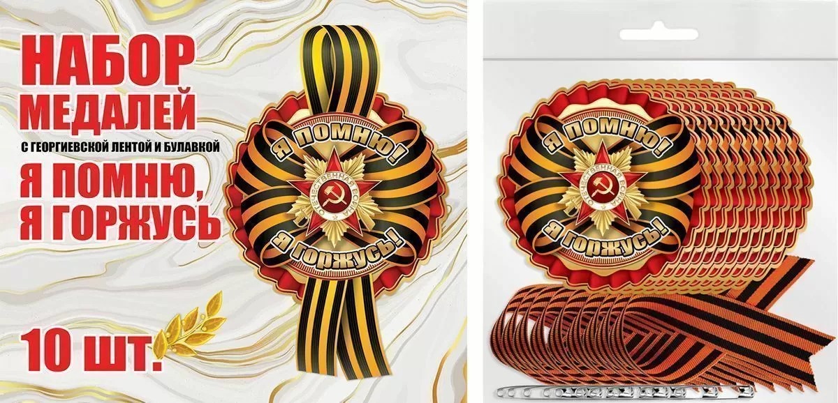 Набор картонных медалей с георгиевской лентой "Я помню, я горжусь" 6400176