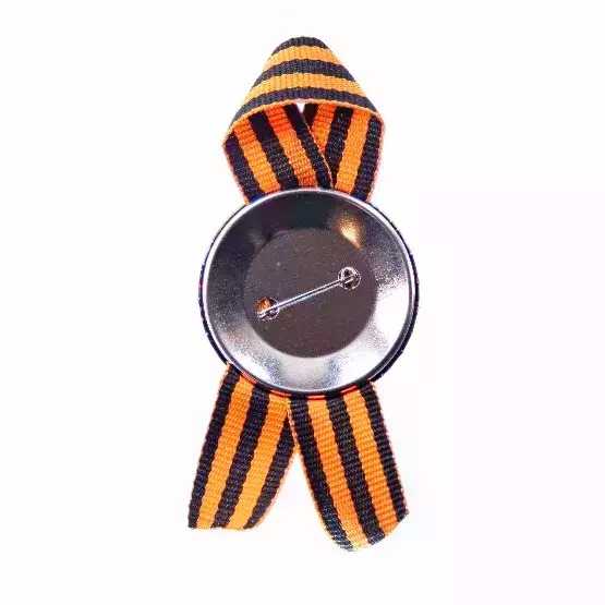 Значок закатой - диаметр 56 мм, крепится на булавку. Ширина ленты 24мм. В пакетике с европодвесом.