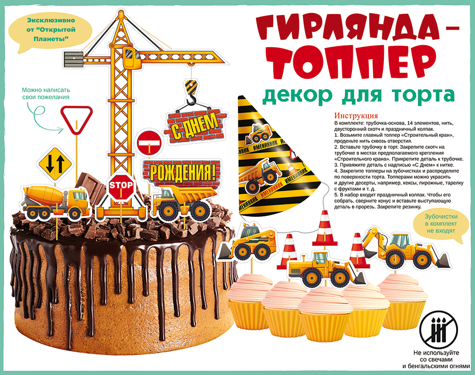 Эффектное украшение для праздничного торта и капкейков. В комплекте праздничный колпак.