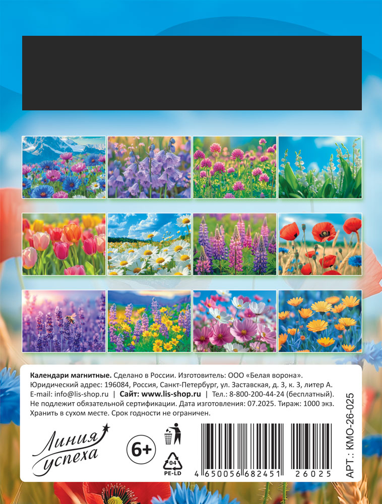 Календарь на магните на 2026 год "Полевые цветы" КМО-26-025 (в упаковке)
