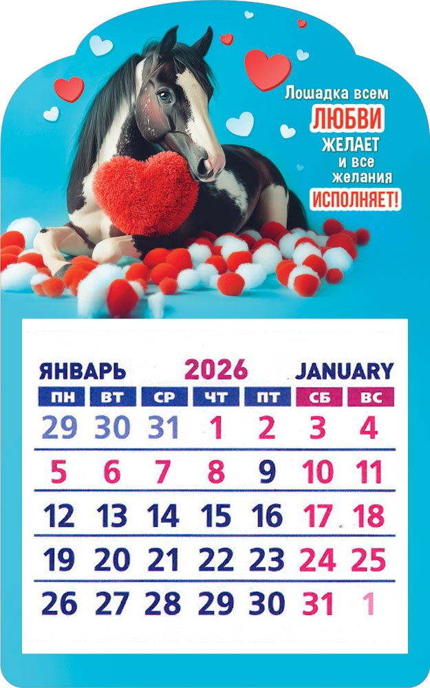 Календарь на магните 2026 "Символ года. Лошадка исполняет желания" КМВ-26-004 (в упаковке)