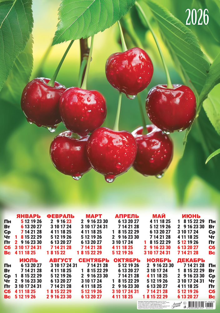 Листовой календарь на 2026 год А2 "Ягоды. Спелая вишня" ПО-26-232