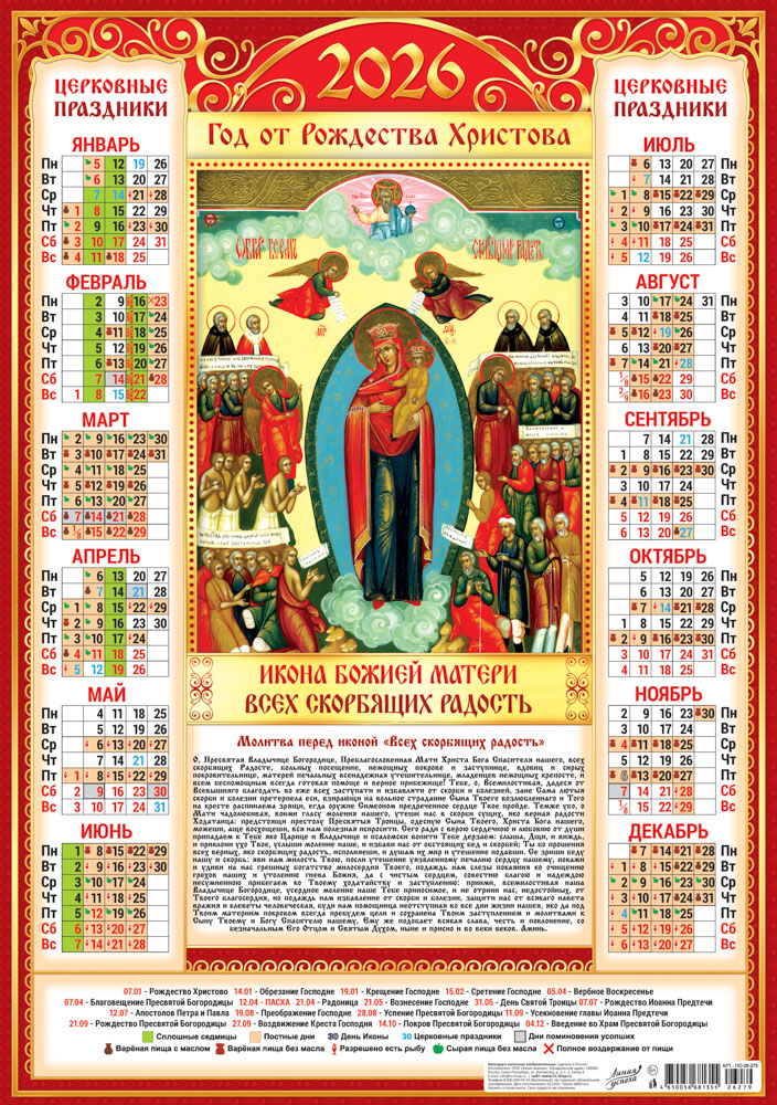 Листовой календарь на 2026 год А2 "Иконы. Всех скорбящих радость" ПО-26-279