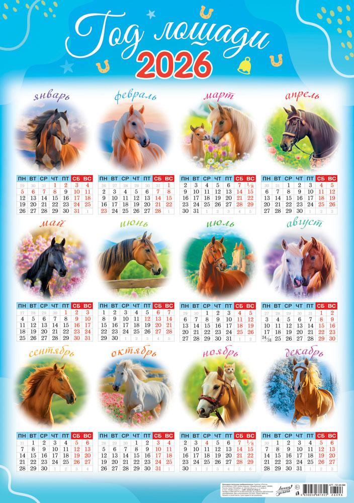 Листовой календарь на 2026 год А2 "Символ года. 12 месяцев" ПО-26-096