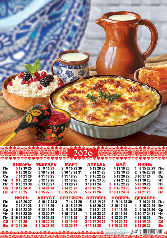 Листовой календарь на 2026 год А2 "Русская кухня. Сочный крупеник" ПО-26-220