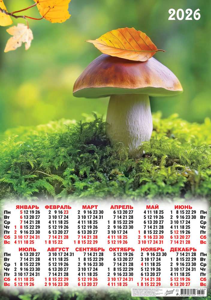 Листовой календарь на 2026 год А2 "Грибочек" ПО-26-230