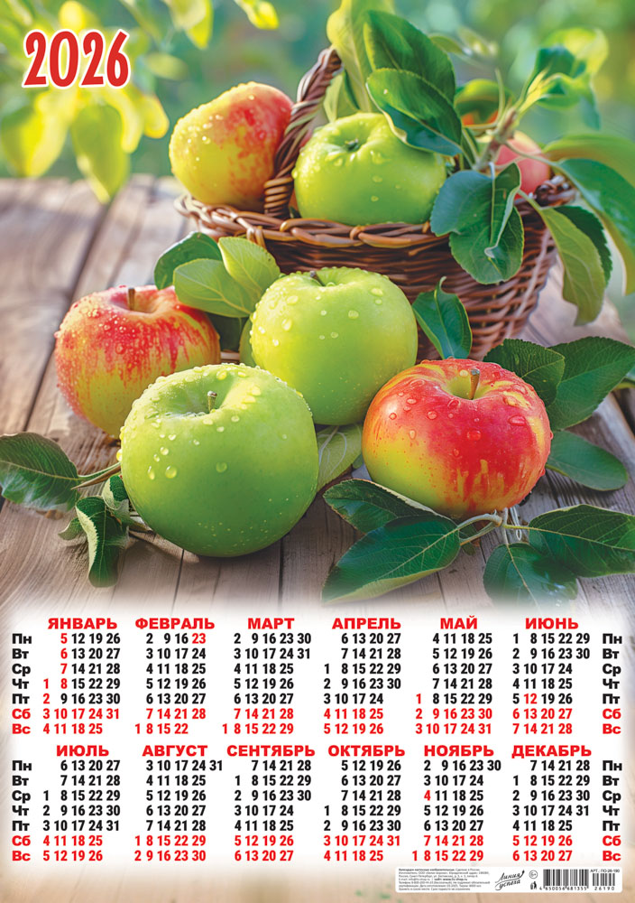 Листовой календарь на 2026 год А2 "Натюрморт. Свежие яблочки" ПО-26-190