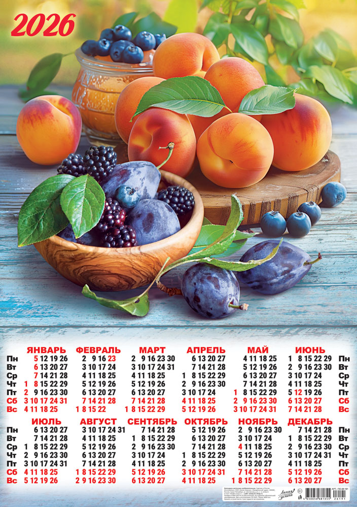 Листовой календарь на 2026 год А2 "Натюрморт. Дачные дары" ПО-26-191