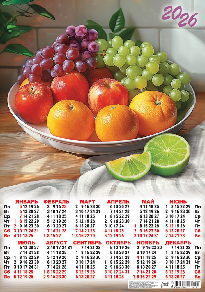 Листовой календарь на 2026 год А2 "Натюрморт. Вкусные витамины" ПО-26-195