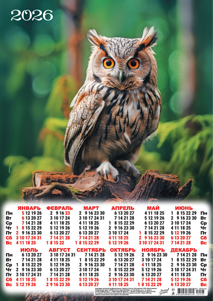 Листовой календарь на 2026 год А3 "Таинственный лес. Совушка" ПМ-26-105