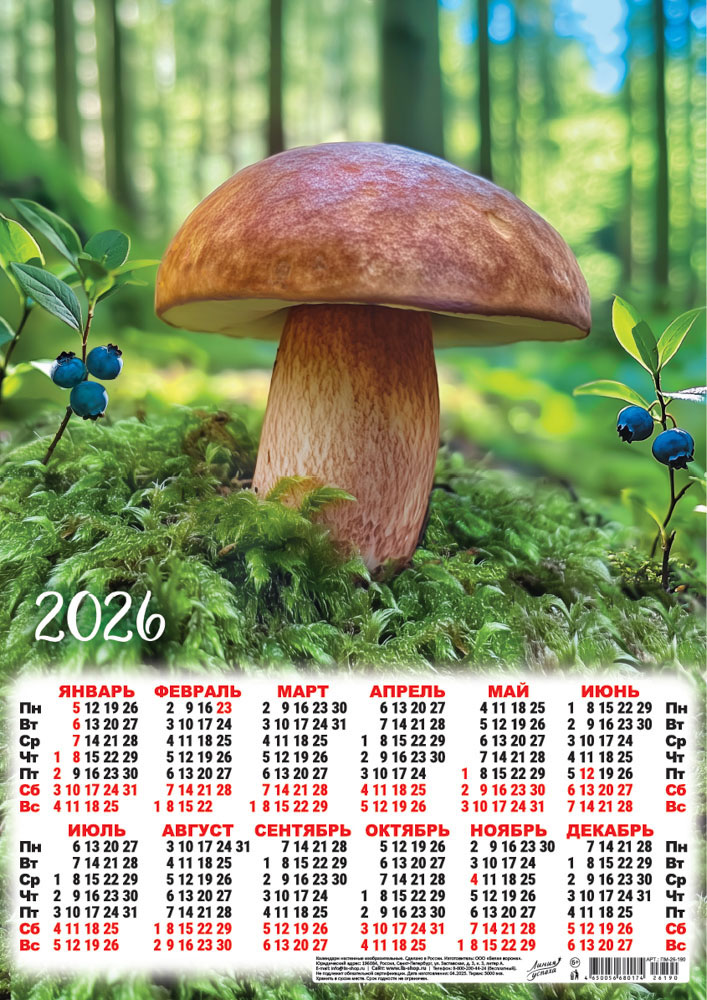 Листовой календарь на 2026 год А3 "Грибочек" ПМ-26-190