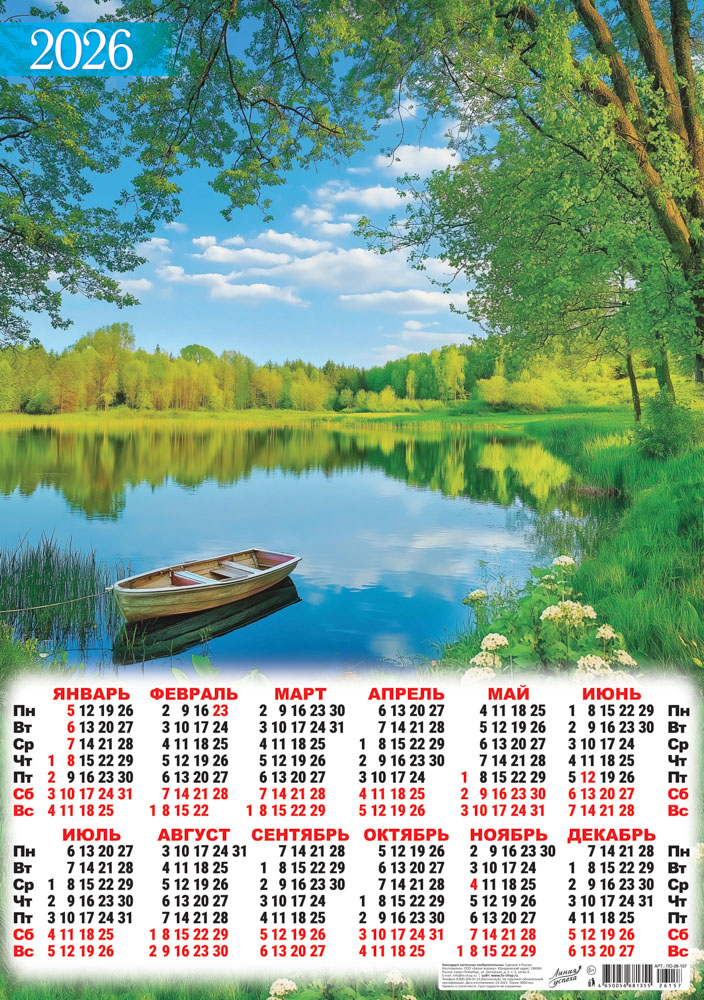 Листовой календарь на 2026 год А2 "Природа. Лодочка на озере" ПО-26-157