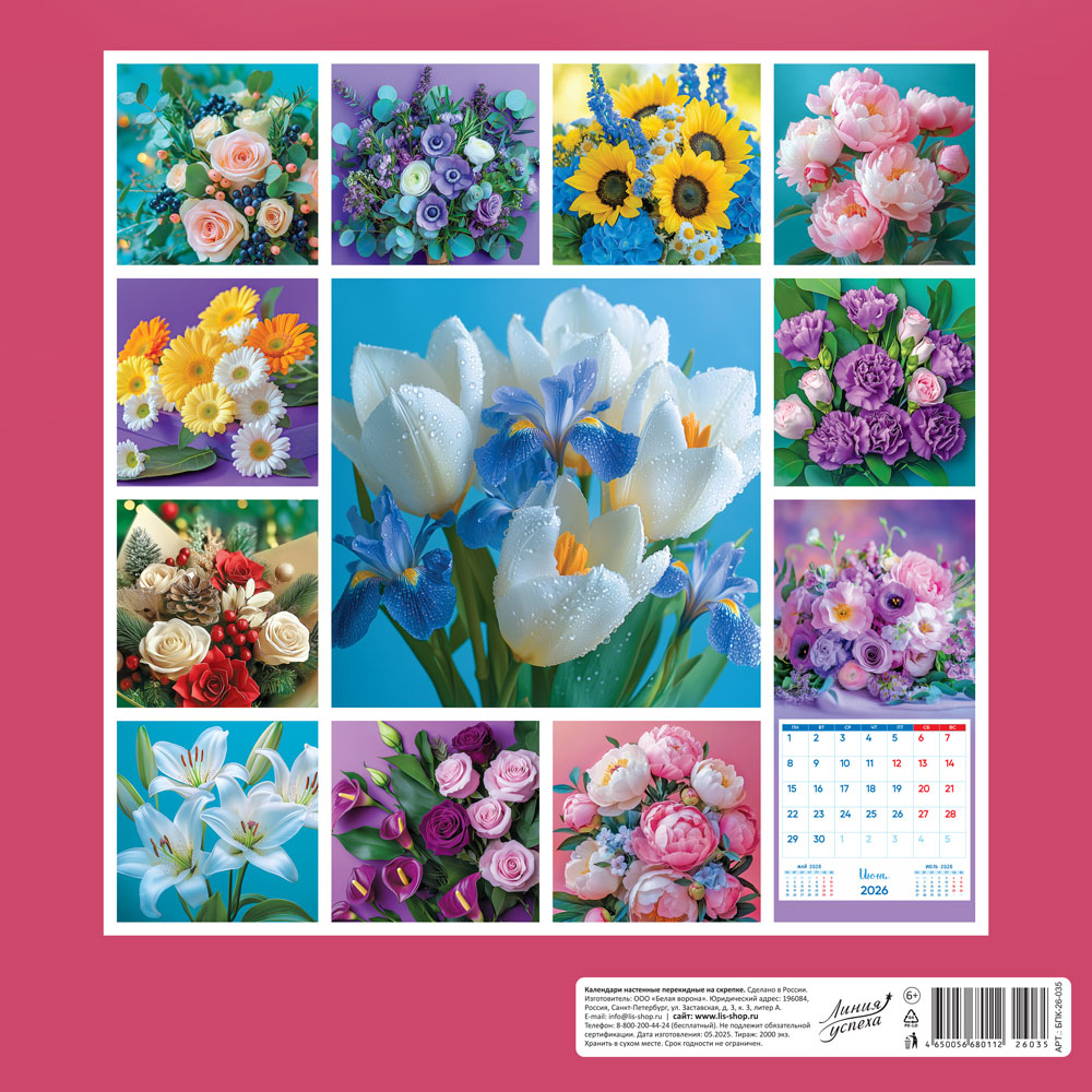 БОЛЬШОЙ перекидной настенный календарь на скрепке на 2026 год "Цветы для души" БПК-26-035 (без упаковки)