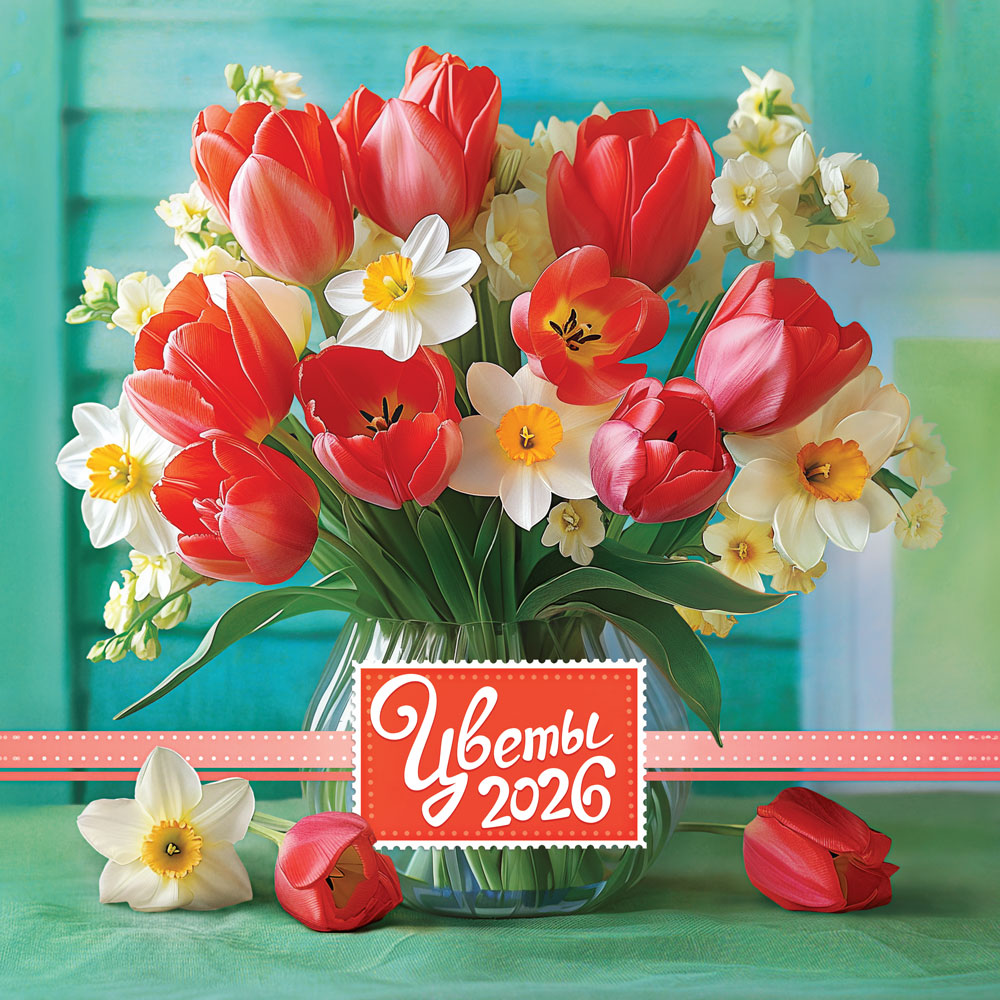 БОЛЬШОЙ перекидной настенный календарь на скрепке на 2026 год "Цветы. Букеты" БПК-26-034 (в упаковке)
