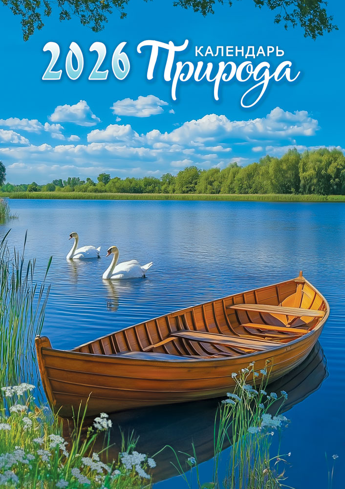 Перекидной настенный календарь на ригеле на 2026 год "Природа. Белые лебеди" РБ-26-036 (без упаковки)