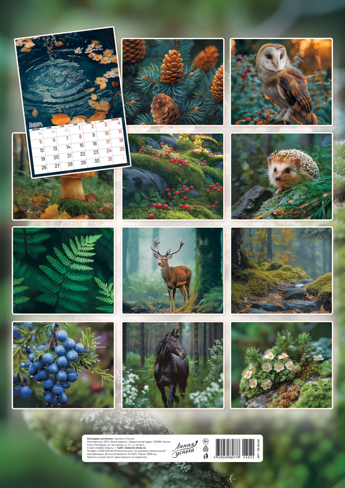 Перекидной настенный календарь на ригеле на 2026 год "Таинственный лес" РБ-26-032 (без упаковки)