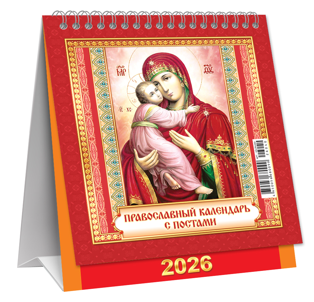 МАЛЫЙ настольный перекидной календарь-домик на 2026 год "Православный календарь с постами" КД-26-040