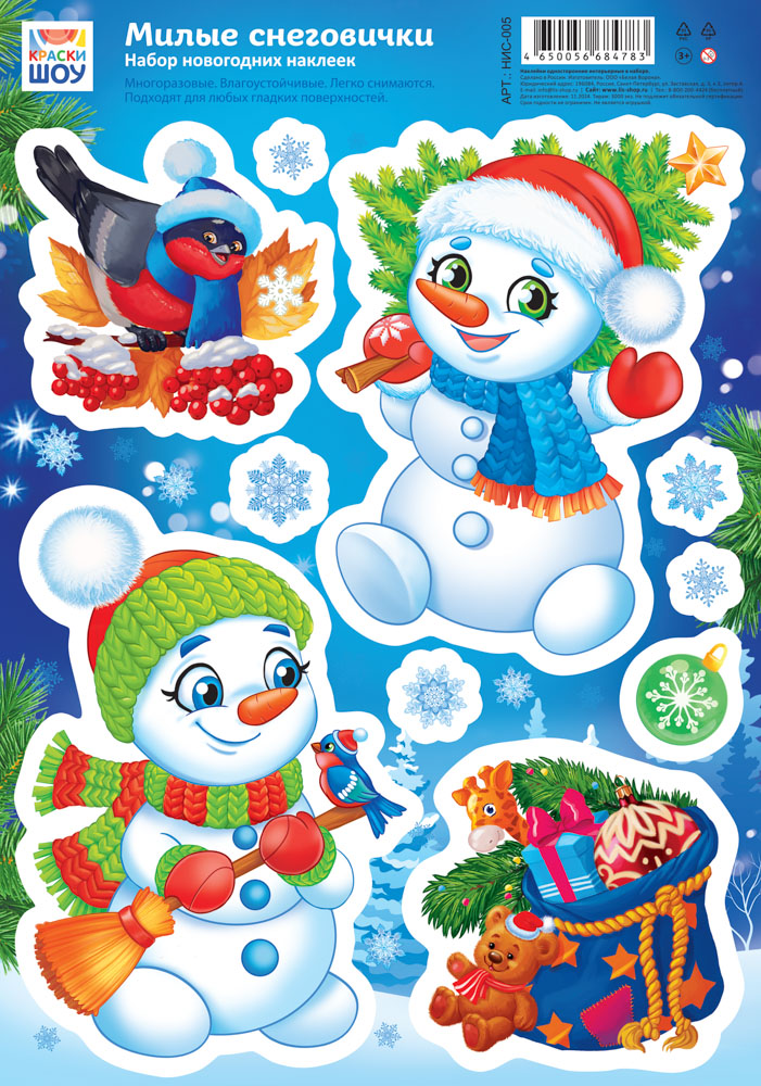 Набор оформительских наклеек на окна и стены "Милые снеговички" НИС-005