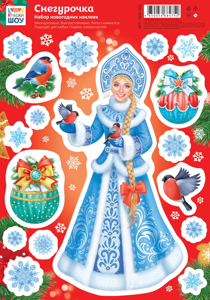 Набор оформительских наклеек на окна и стены "Снегурочка" НИС-003