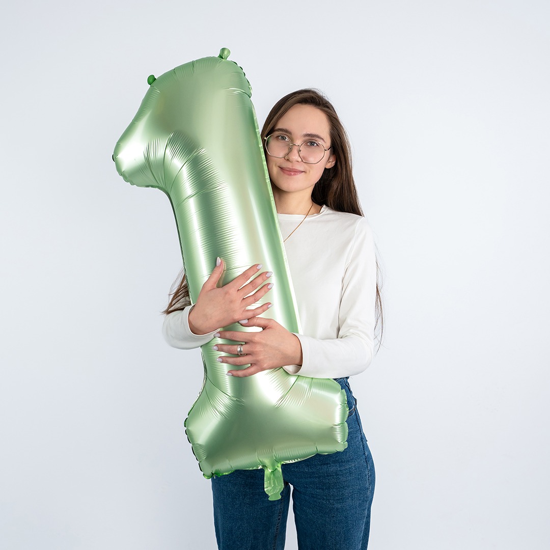 Фольгированный шар "1" цвет авокадо сатин 24311
