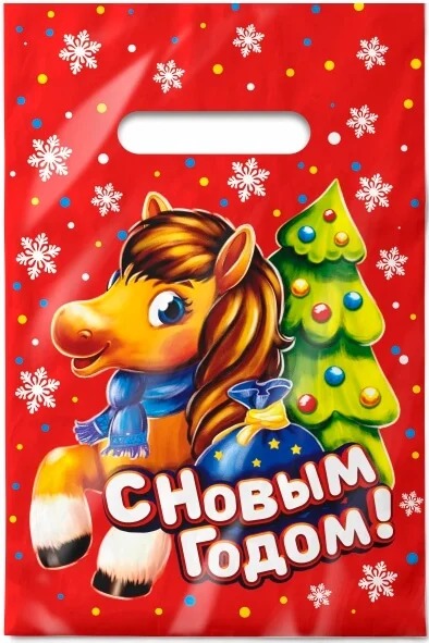 Пакет новогодний ПВД с вырубной ручкой "Жеребёнок" НГ2030Жер