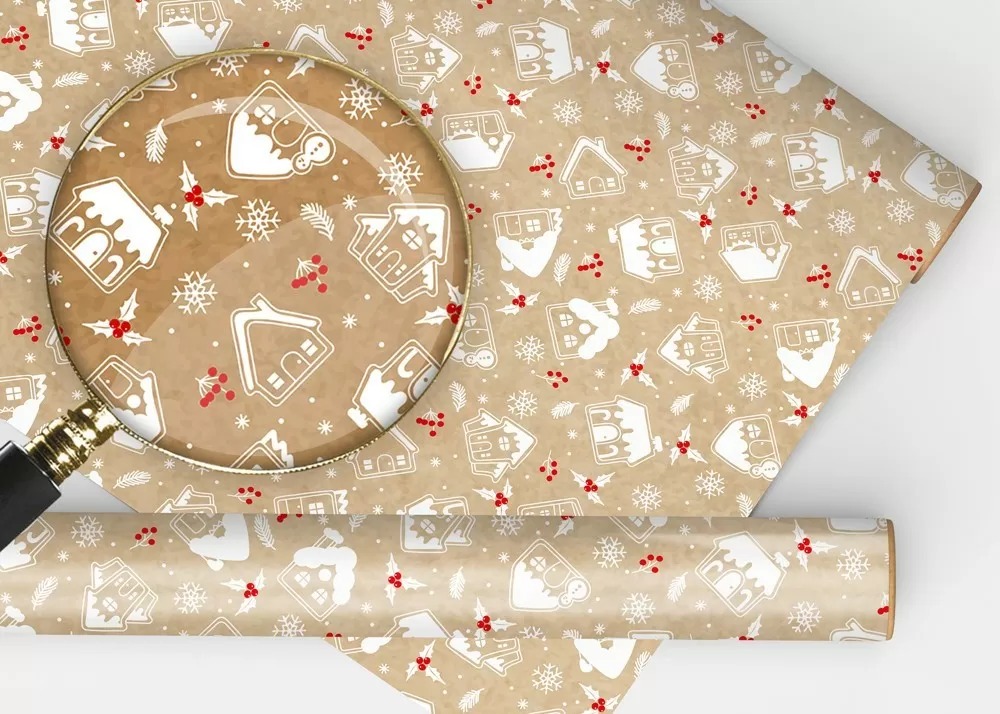 Новогодняя подарочная бумага "Пряничные домики и ягоды" 15.25.02545