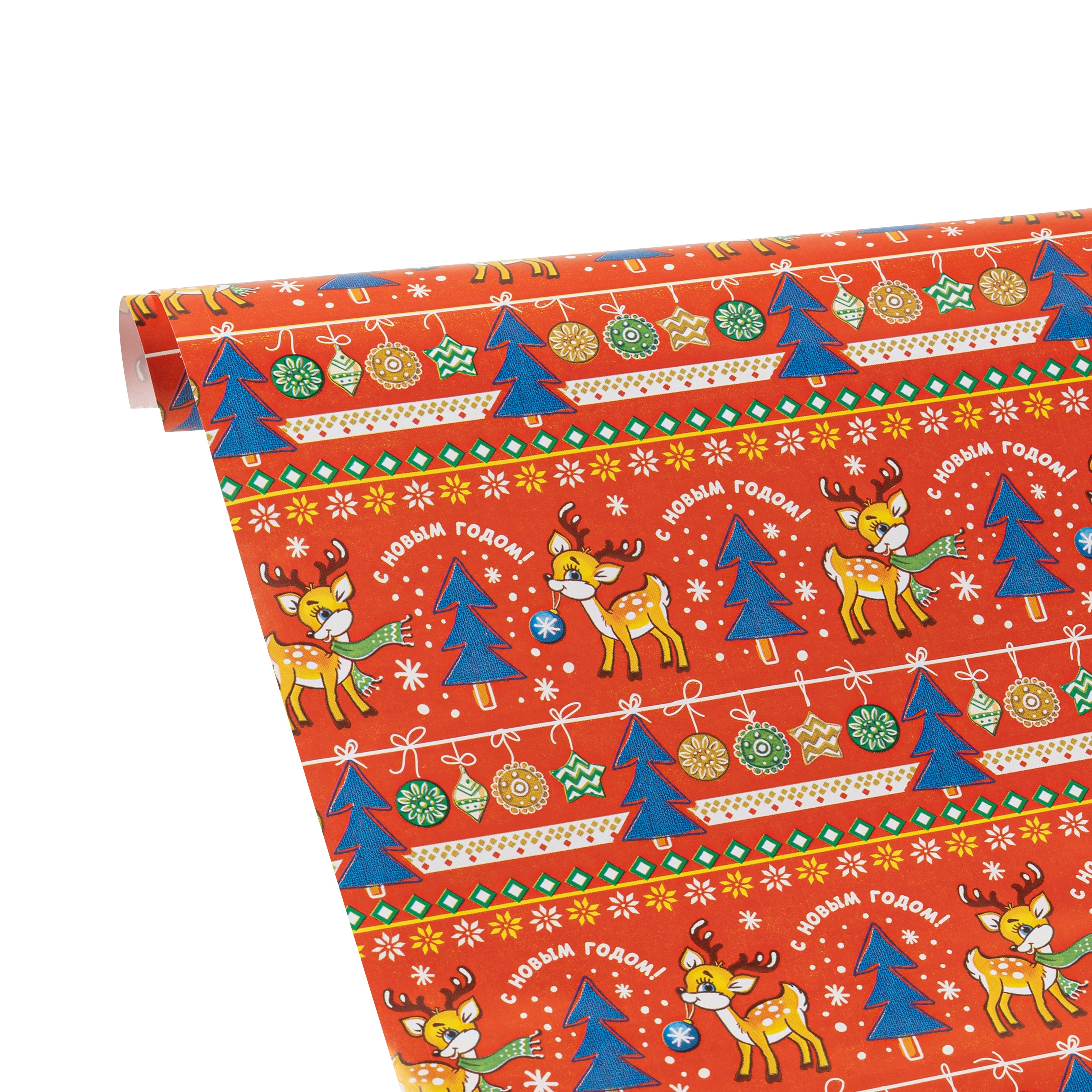 Упаковочная бумага в рулоне "Оленята. Красный" 8810865
