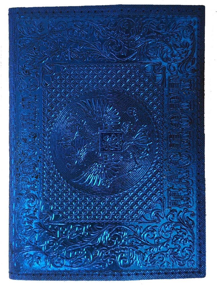 Обложка для паспорта Герб РФ металлик синий (нат.кожа) арт1,15м-251