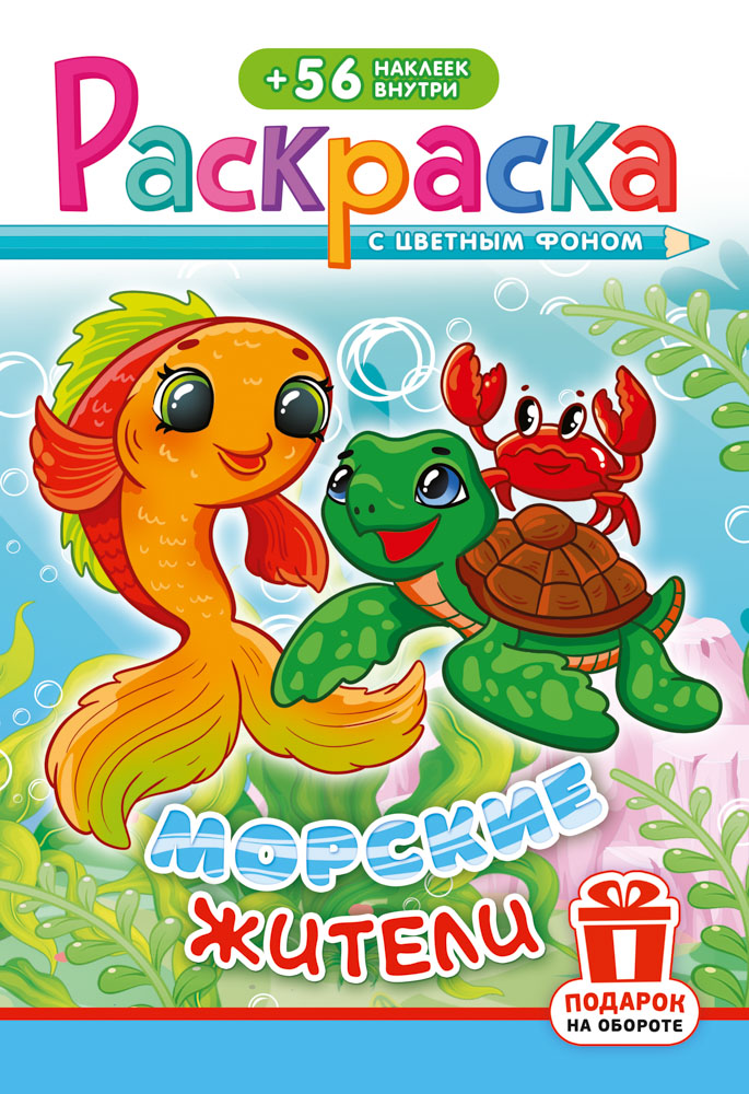 Раскраска с наклейками А5 "Морские жители" РНМ-727