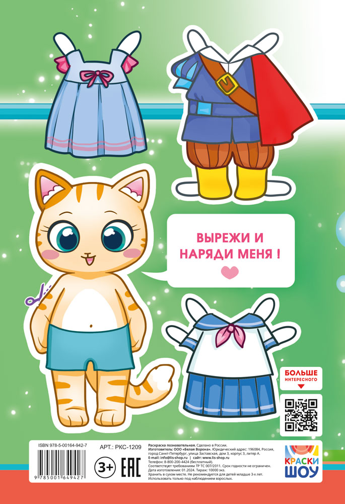 С ИГРОЙ на обложке и внутри. Цветные иллюстрации, размер в сложенном виде 162х234 мм. Обложка: картон 170 г/м, УФ лак. Внутренний блок: 16 страниц, офсетная бумага 80 г/м.