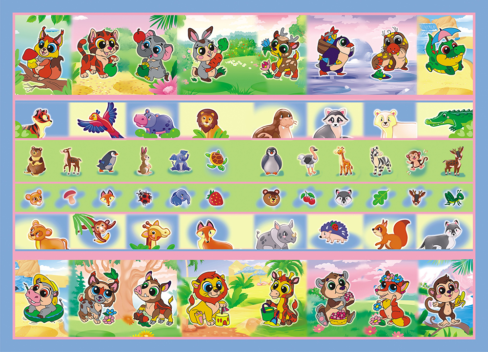 С ИГРОЙ и цветными иллюстрациями, размер в сложенном виде 162х234 мм. Обложка: картон 170 г/м, УФ лак. Внутренний блок: 16 страниц, офсетная бумага 80 г/м. Наклеечный блок: размер 324х234 мм.