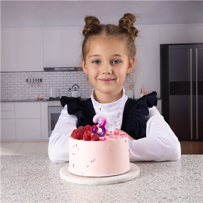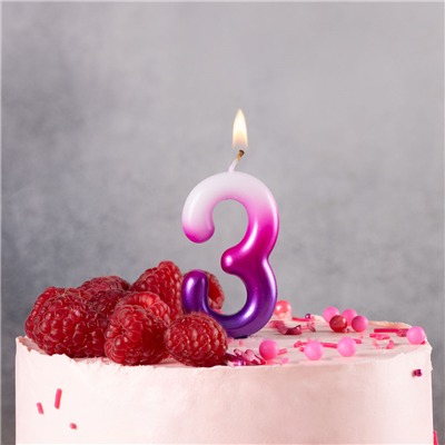 Свеча -цифра "3" Омбре розов/фиолет 1502-6379