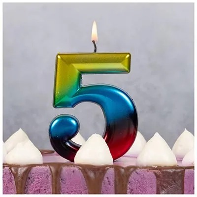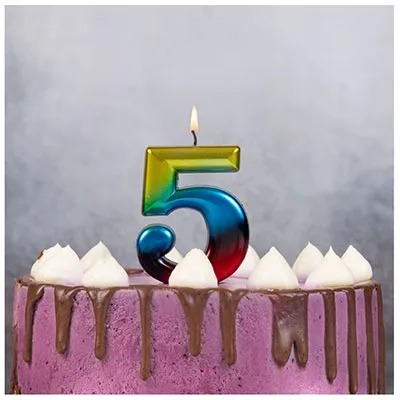 Свеча-цифра "5" Радуга металлик 1502-3769