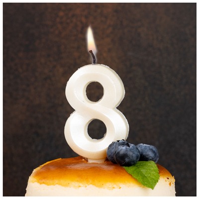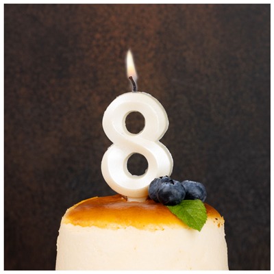 Свеча -цифра "8" Грань белый жемчуг 1502-6593