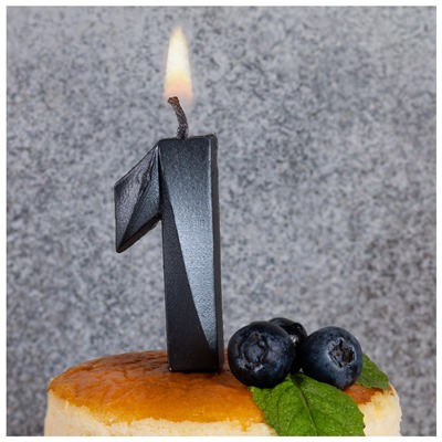 Свеча -цифра "1" Грань черный жемчуг 1502-6576