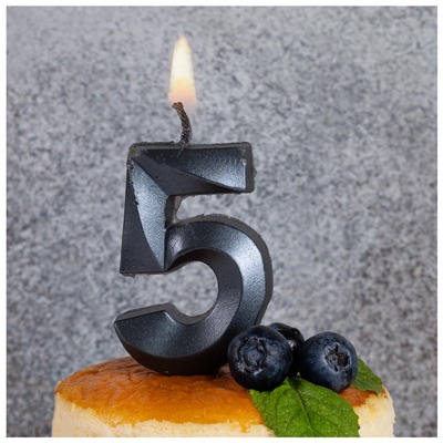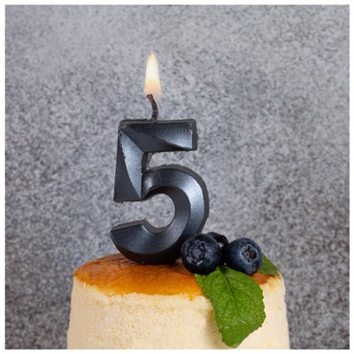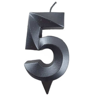 Свеча -цифра "5" Грань черный жемчуг 1502-6580