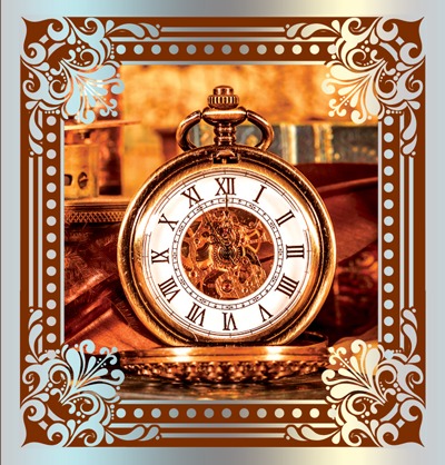 Мини-открытка двойная "Часы" М-10539