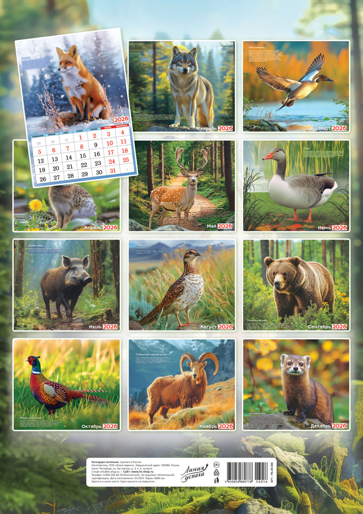 Перекидной настенный календарь на ригеле на 2026 год "Охота" РБ-26-056 (без упаковки)