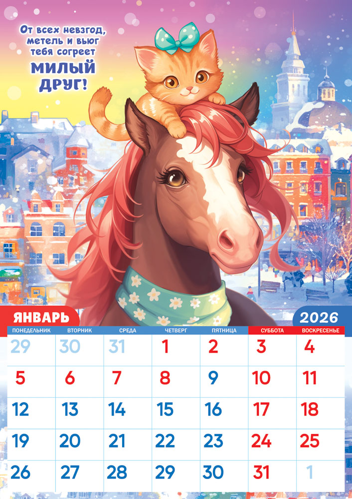 Перекидной настенный календарь на ригеле на 2026 год "Календарь про дружбу" РБ-26-021 (без упаковки)