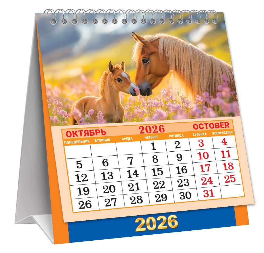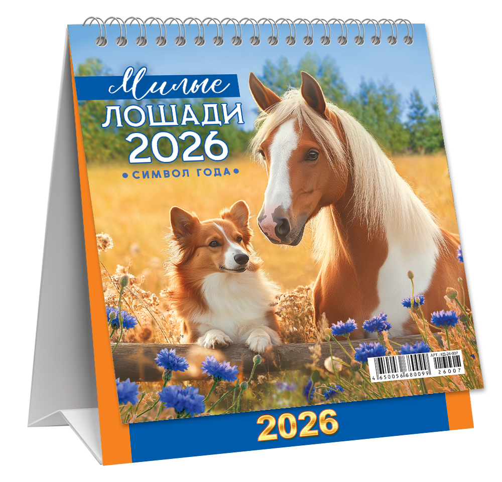 МАЛЫЙ настольный перекидной календарь-домик на 2026 год "Символ года. Милые лошади" КД-26-007