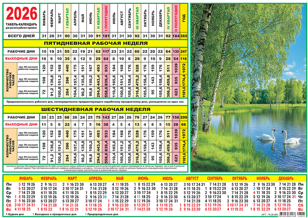 Табель-календарь 2026 "Природа. Лебеди" ТК-26-005