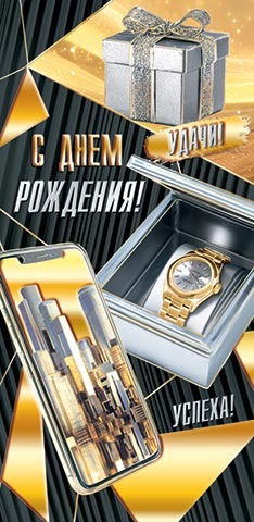 Тематика День Рождения, Мужские Отделка Фольга Размер 168x83мм ?Вес в граммахВес в граммах8 Категория цены B