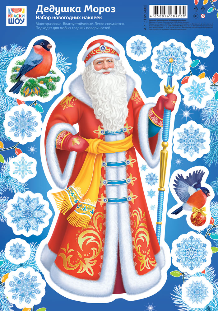 Набор оформительских наклеек на окна и стены "Дедушка Мороз" НИС-002