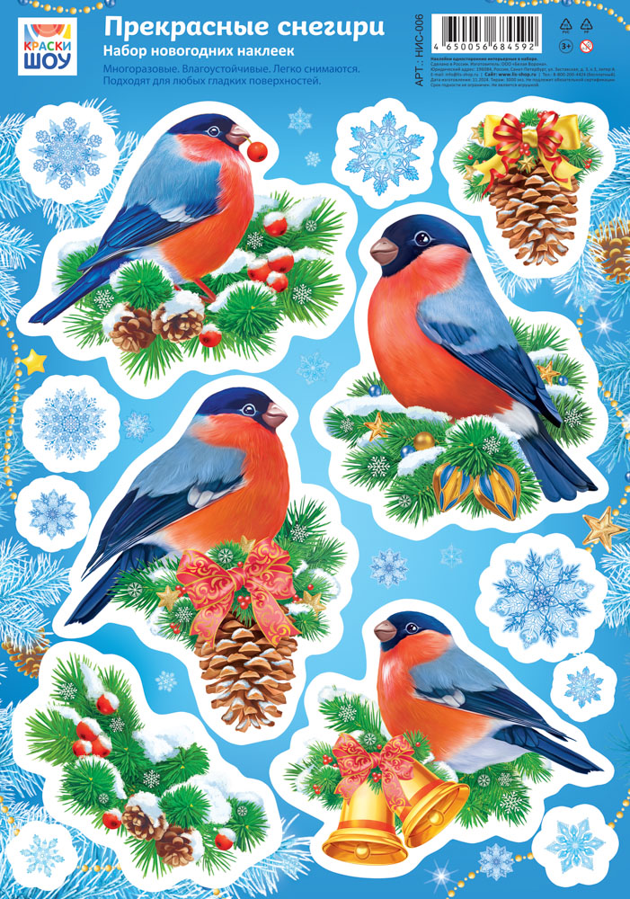 Набор оформительских наклеек на окна и стены "Прекрасные снегири" НИС-006