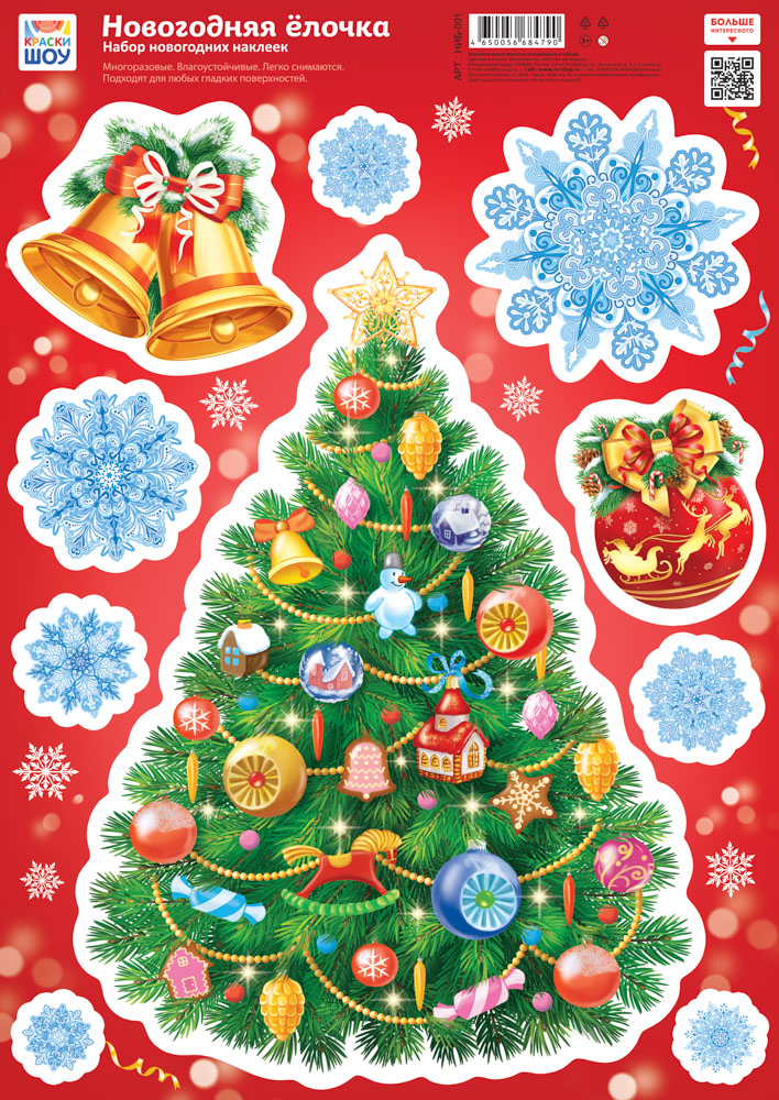 Набор оформительских наклеек на окна и стены "Новогодняя ёлочка" НИБ-001