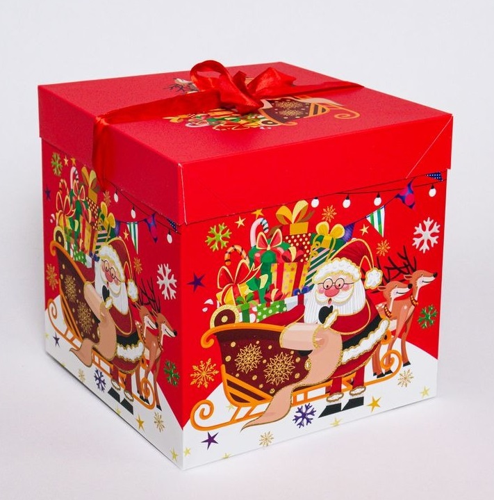 Новогодняя коробка "Новогодняя с лентой" Ч37543 (в ассортименте)