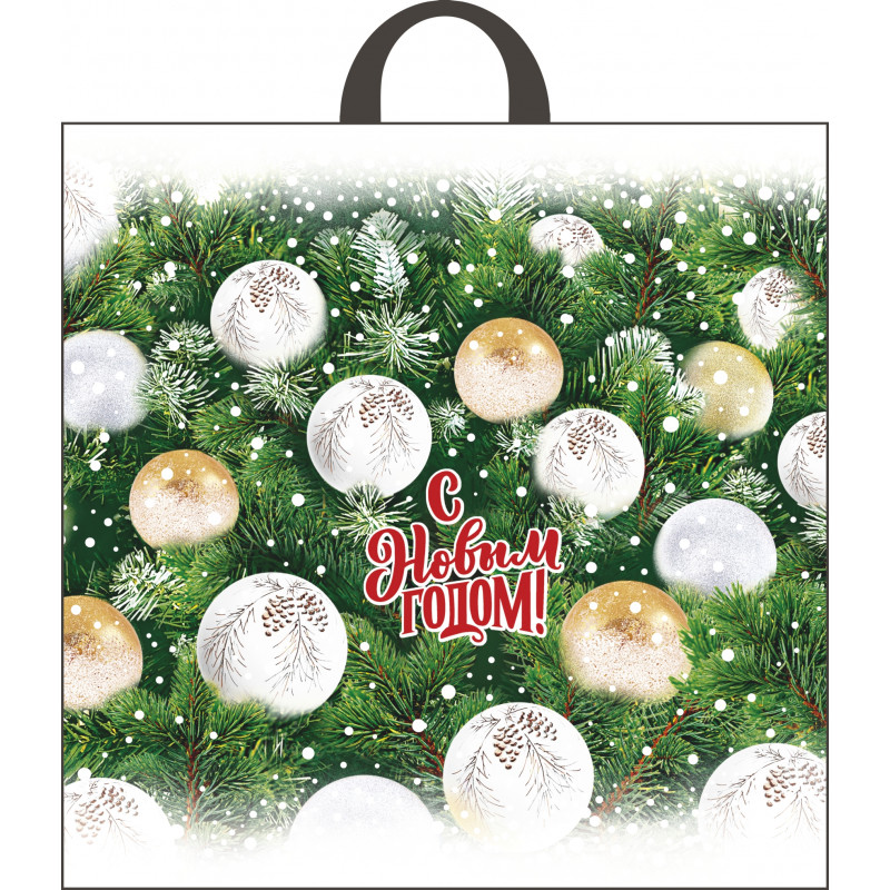Пакет новогодний ПВД с петлевой ручкой "Белые шары" НГ4444Бш